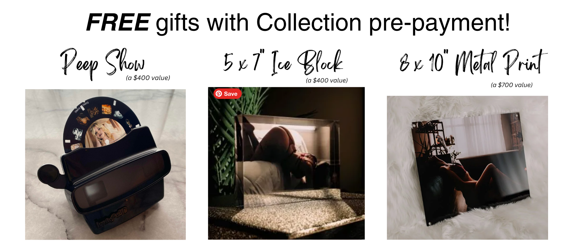 When you set up pre-payments, you eliminate any stress about what to buy. You’ll already have your dream collection picked out, so all that’s left is to show up, have an unforgettable experience, and let me work my magic!